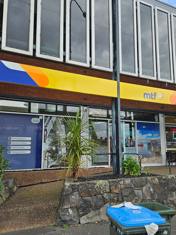 When MTF’s Mt Eden branch transitioned to sole tenancy, the site still carried extensive AMI branding. The branch needed a complete identity conversion — not just new signage, but the careful removal of AMI graphics throughout the building interior and exterior. This included fascia work, plinth refacing, contravision replacement, reception branding, and wall graphics.